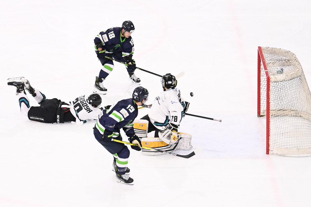 第3ピリオド5分、ワイルズは青山(奥)がその試合2ゴール目で8-1とした/photo – Hikaru Onoda