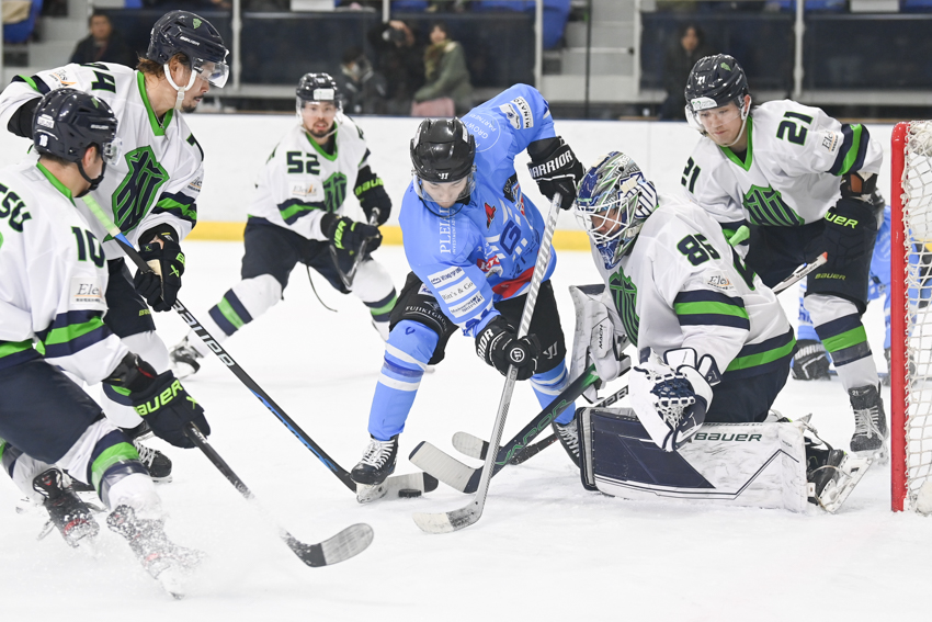 バックスが第1ピリオド13分にFW古橋のパワープレーゴールで先制したが、ブレイズは16分にFW所がゴール前の混戦から押し込んで同点とした。第2ピリオドも9分にバックスが古橋のゴールで先行すると、11分にブレイズがDF京谷のパワープレーゴールで再び追いつく展開に。息づまる熱戦は第3ピリオド10分、バックスがFW磯谷のパワープレーゴールで勝ち越すと、GK福藤を中心に固い守りでブレイズの追撃を許さず、19分にはFW大椋のエンプティネットゴールで試合を決めた。